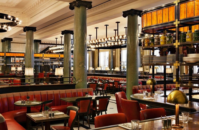 充满活力的酒吧由著名设计师MartinBrudnizki设计,人字形斜纹的木制地板上铺着手织地毯,连同壁炉和木制吧台营造舒适而型格的环境让朋友知己相聚畅谈。